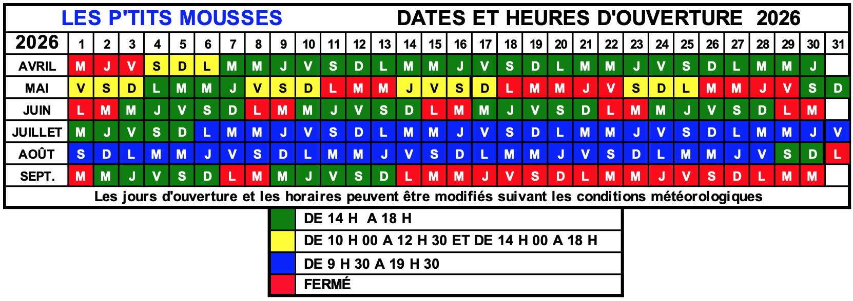 Horaires d’ouverture